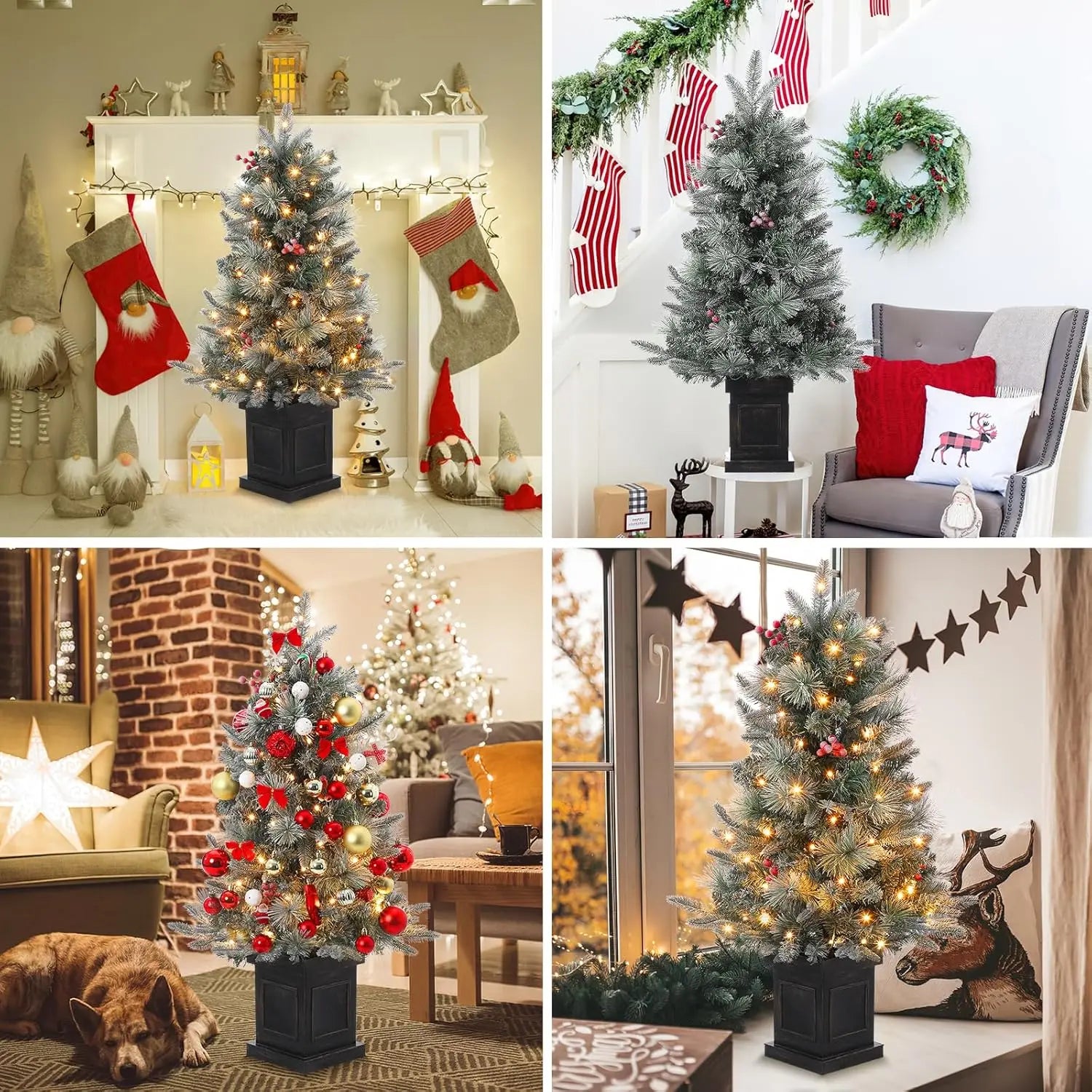 🎄【Sturdy Pot Stand】For your convenience, the pot base of the 3-foot artificial tree is made of cement, with the tree sitting in an attractive clear lightbox that doesn't expose the cement, making it easy to place anywhere in your home.