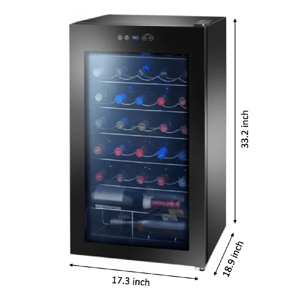 Measuring at 17. 3" by 18. 9" by 33. 1", this premium wine cooler's compact size allows it to fit seamlessly into various spaces, making it suitable for kitchens, dining rooms, or even cozy wine cellars.