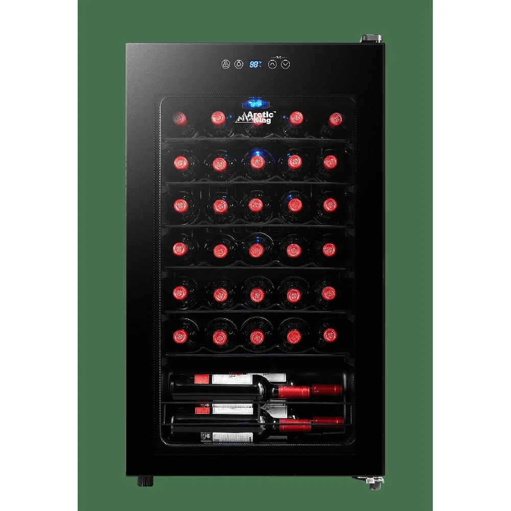 With a capacity to hold up to 34 wine bottles, this wine cooler offers ample space for both storing and displaying your favorite wines.