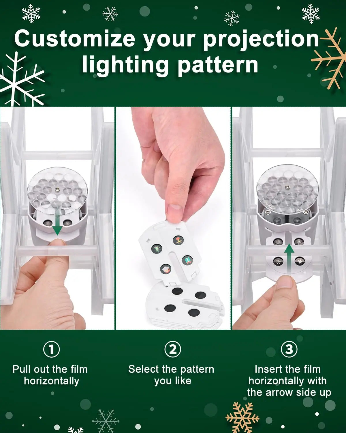 Tired of “one-style-fits-all” decor? Our tree topper allows you to swap projection films (included, and extra packs are available) to match any theme—whether it’s Christmas snowflakes, New Year countdowns, or Halloween pumpkins… Just pull out the film, pick your favorite pattern, and insert it back—done!